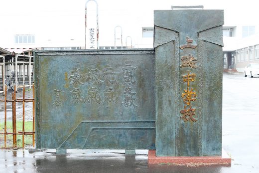 めずらしいブロンズ鋳物の中学校の門柱です。